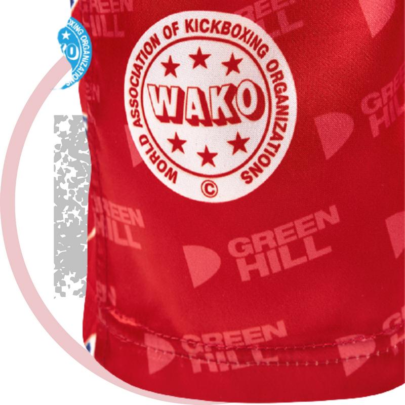 Брюки для кикбоксинга GREEN HILL WAKO APPROVED предназначены для соревнований по кикбоксингу международного уровня. Дизайн брюк выполнен методом сублимации. Боковые стороны брюк выполнены из вентилируемой сетки для обеспечения благоприятного микроклимата. Материал атласный полиестер.