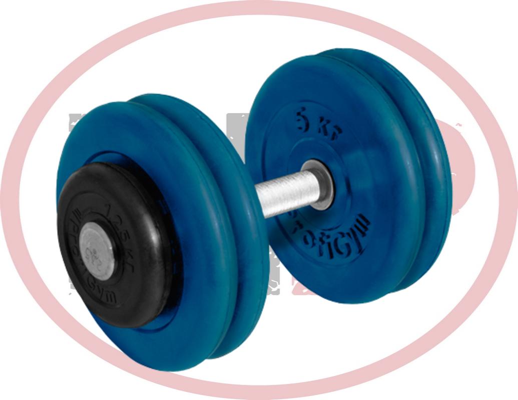 Гантель с цветными обрезиненными дисками. Гантель выполнены из хромированной стали. Масса грифа 2,5 кг. Длина гантельного грифа 540 мм. Гриф рифленый в месте хвата, для лучшего сцепления с рукой.