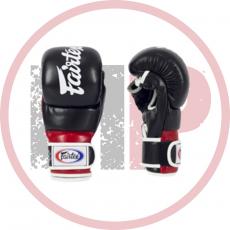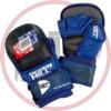 Перчатки ММА для российских турниров по ММА. Обладают толстым наполнителем ударной части для обеспечения безопасности спортсменов и максимально открытой ладонью для облегчения борьбы. Большой палец закрыт и защищен двухсекционным наполнителем из пены. Материал перчаток - натуральная кожа. Крепление на липучке в два оборота.