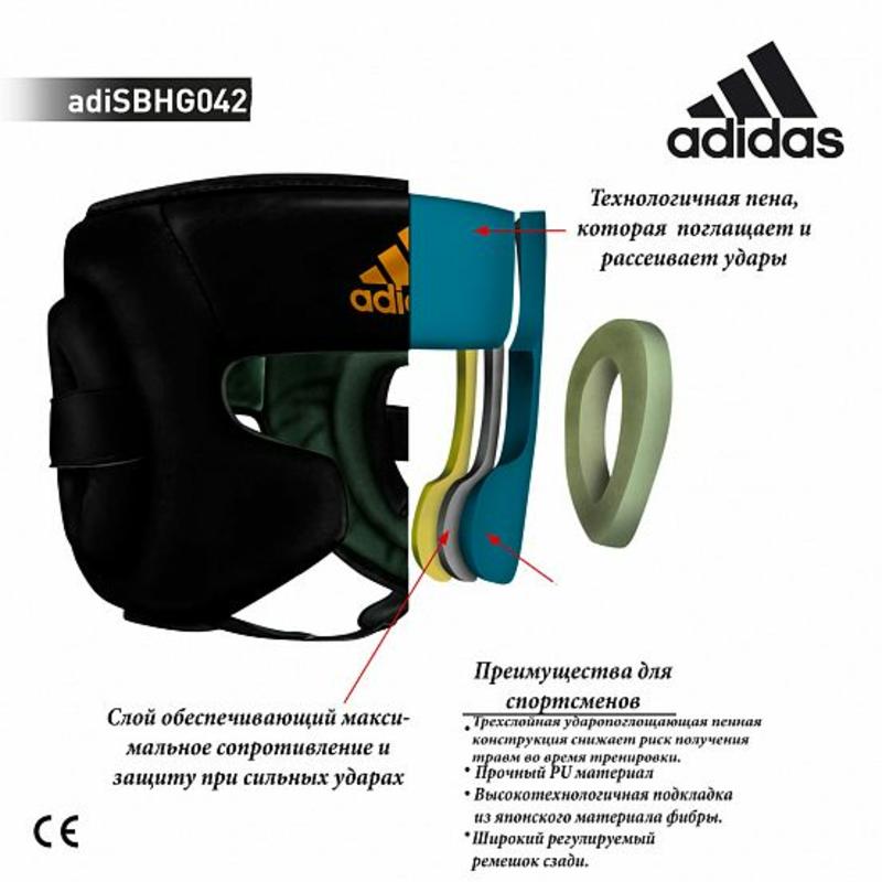 Легкий и комфортный боксерский шлем adidas из серии SPEED. Шлем с полной защитой "Full Face" обеспечит непревзойденную защиту. Предназначен как для любителей, так и для профессионального применения, Изготовлен из полиуретана нового поколения PU4G, мягкого и прочного. PU4G выглядит, как кожа, и нечувствителен к колебаниям температуры и влажности. Технология I-PROTECH®, с помощью которой выполнен наполнитель, обеспечивает поглощение ударов и вибраций. Подкладка изготовлена по технологии ‘I-Comfort+® из материала Amara Coldwave, Она обеспечивает быстрое испарение жидкости и и имеет антиаллергенные и антискользящие свойства. Логотип adidas выполнен в золотом цвете. Обратите внимание на всю коллекцию adidas Speed, перчатки из этой серии отлично подойдут к шлему как комплект для бокса. Форма шлема серии SPEED была разработана в тесном сотрудничестве с ведущими европейскими боксерами. Предназначен для боксеров, а так же для спортсменов других видов контактного спорта, где необходима проверенная проф