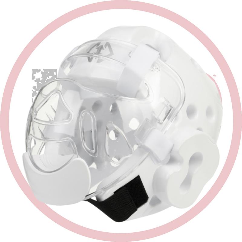 Маска очень легкая, удобная в применении, а главное, что бойцу предоставляется полная свобода действий и полный обзор. Материалом маски является прочный пластик, выдерживающий очень сильные удары. Маска получила специальные отверстия, благодаря которым удалось достичь хорошей вентиляции. Имеется слой полиуретана в тех местах, где идет соприкосновение с лицом. Сделано это с целью поглощения ударов. Для поддержки подбородка есть специальная подкладка. Специальные ремни на липучках надежно фиксируют маску к шлему. Материал: пластик